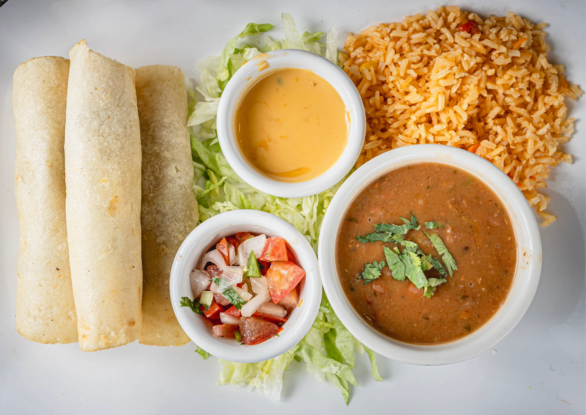 Three Delicious Tacos with Your Choice of Beef or Chicken Fajita, in Flour or Corn Tortilla. Served with Rice, Refried Beans and French Fries